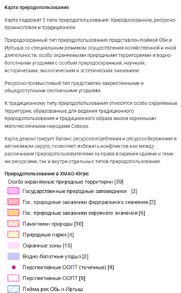 При выборе пункта «Описание» отображается информация о карте и условные обозначения.
